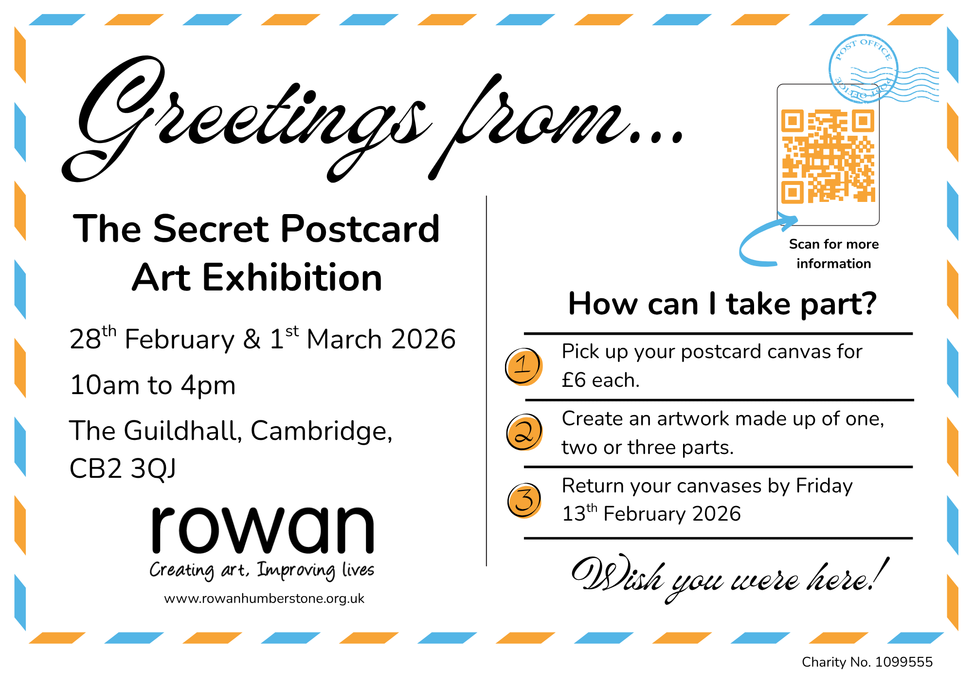 We are delighted to announce that blank canvases are now available for our 2026 Secret Postcard Exhibition. This year’s theme is “Greetings From…”