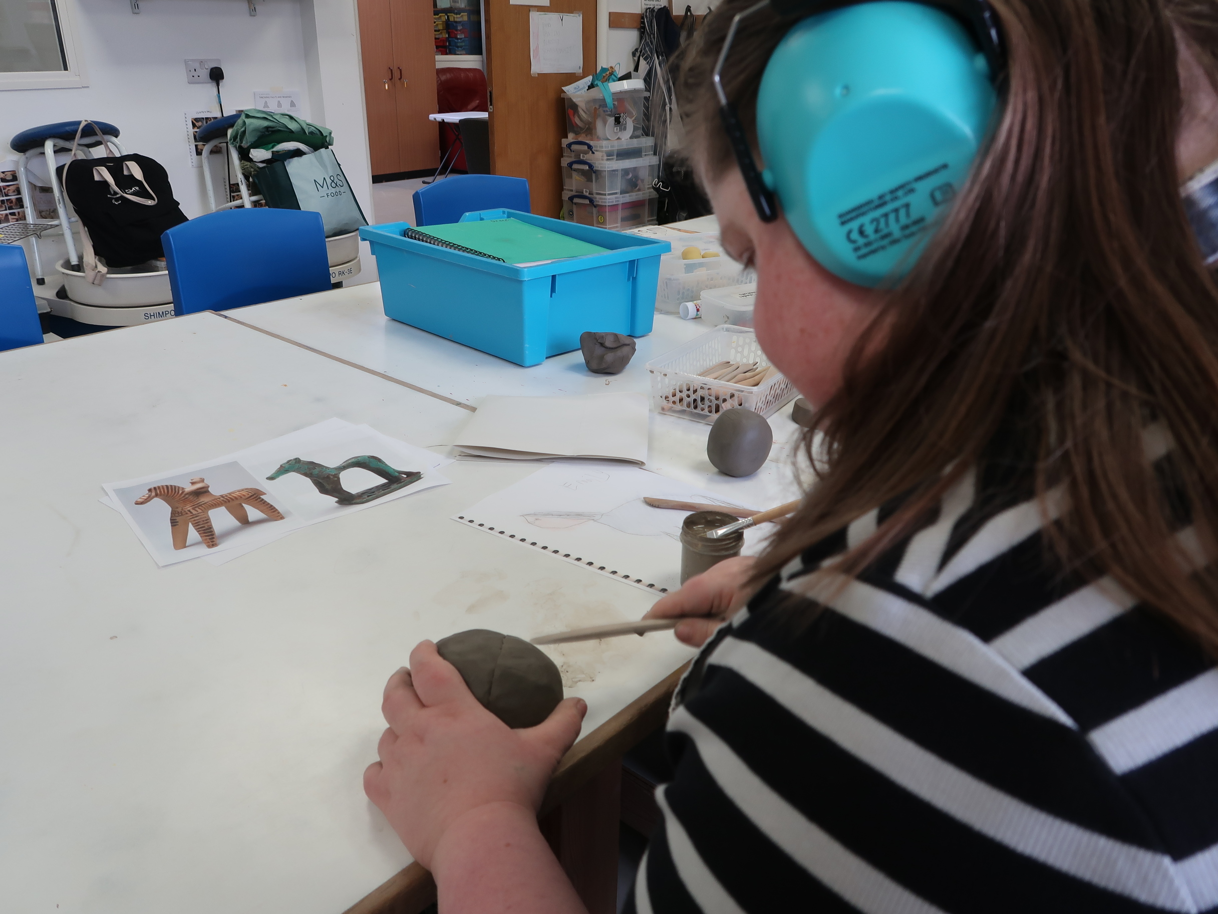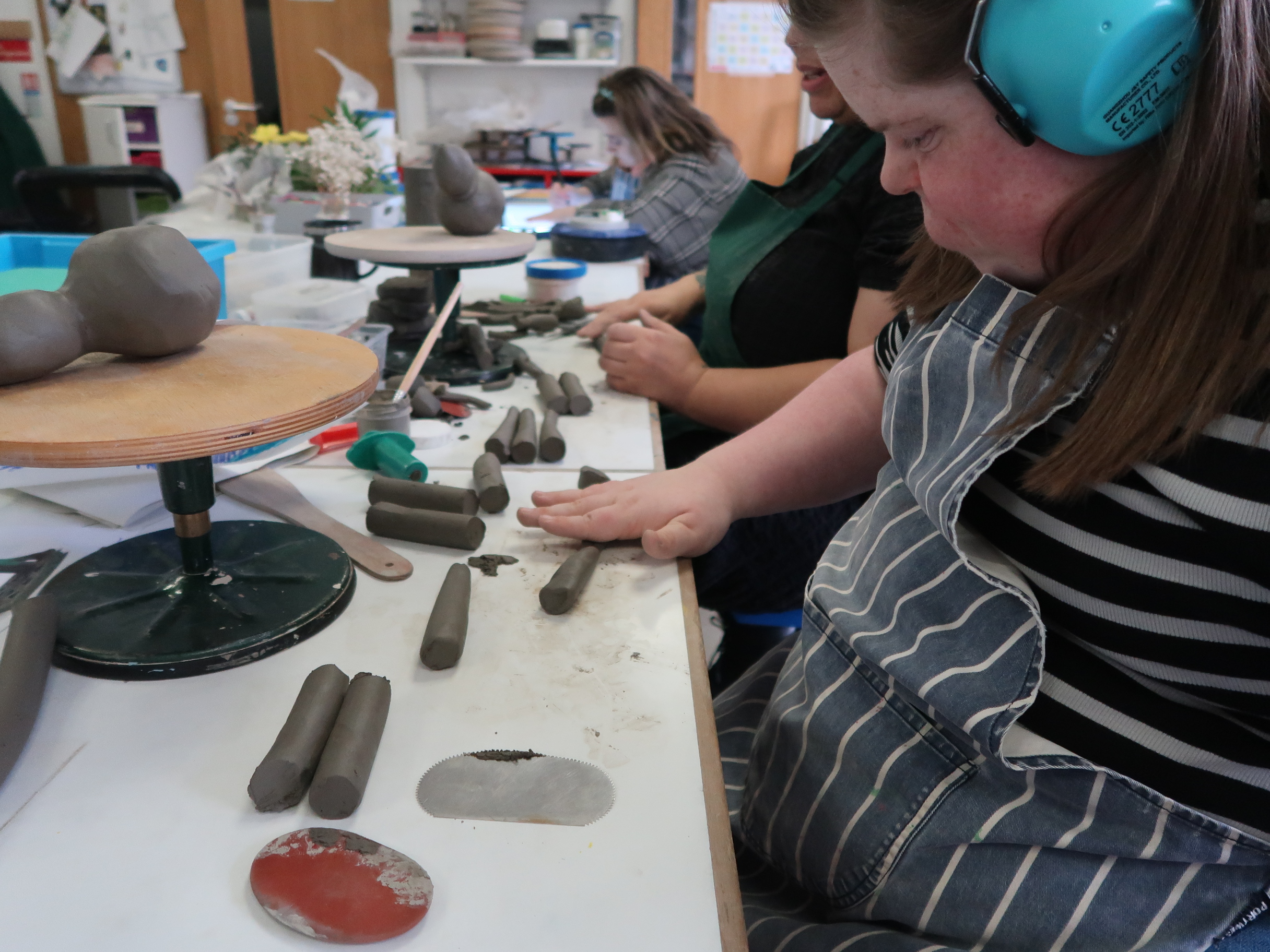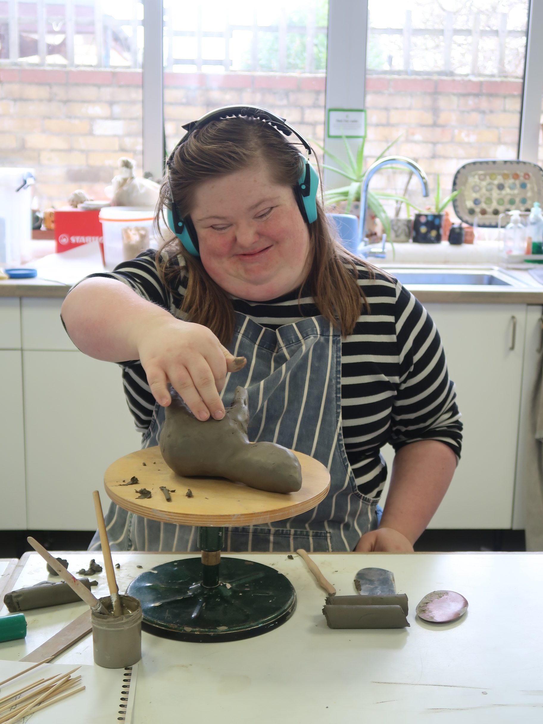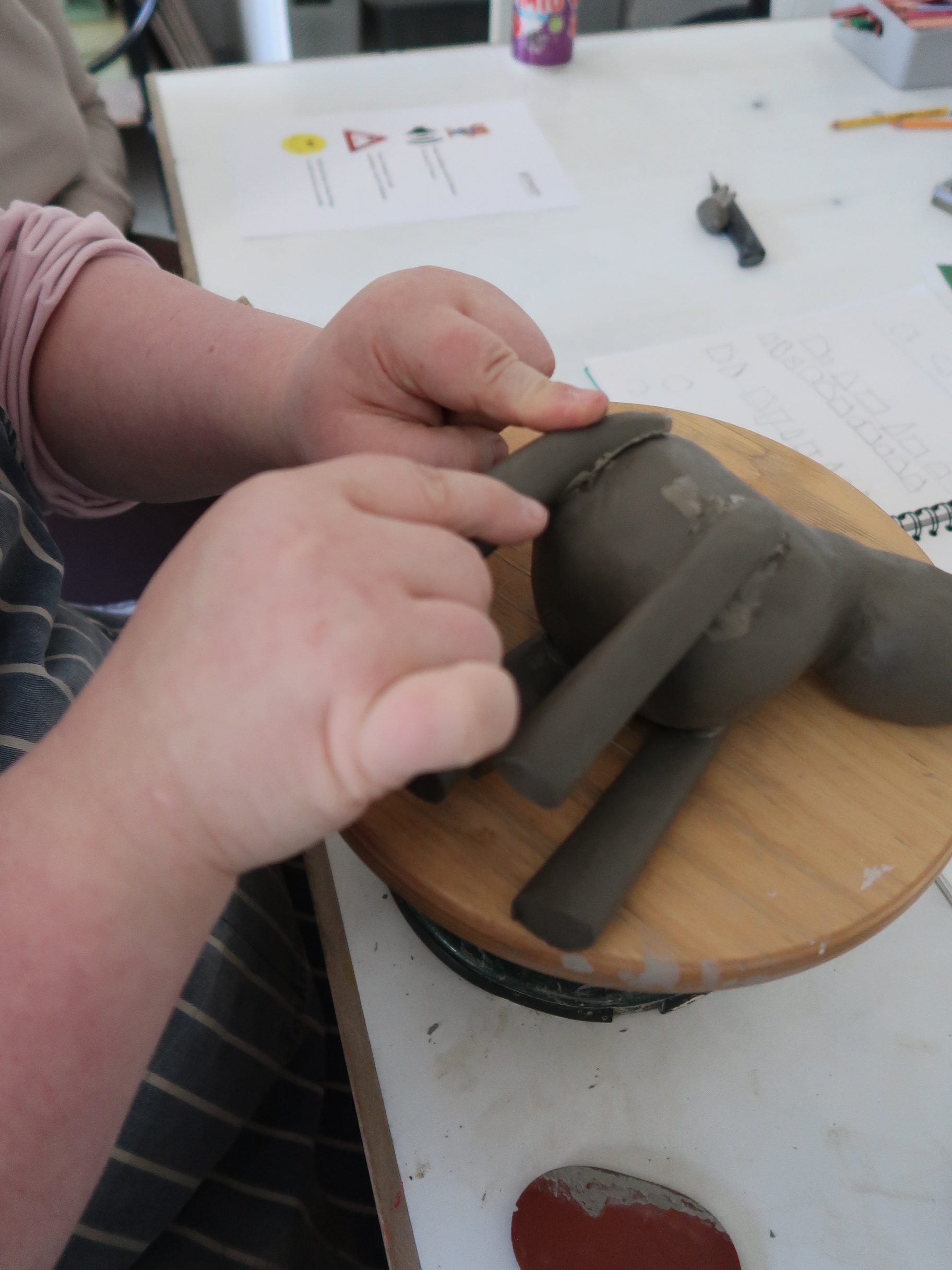 Emily has been attending Rowan for around two years, joining us three times each week. She enjoys painting and immersing herself in clay projects every Friday. Recently, Emily has been focusing on a heartfelt project for her brother. I had the wonderful opportunity to enter the ceramics room and chat with Emily about her latest creation – Duncan!