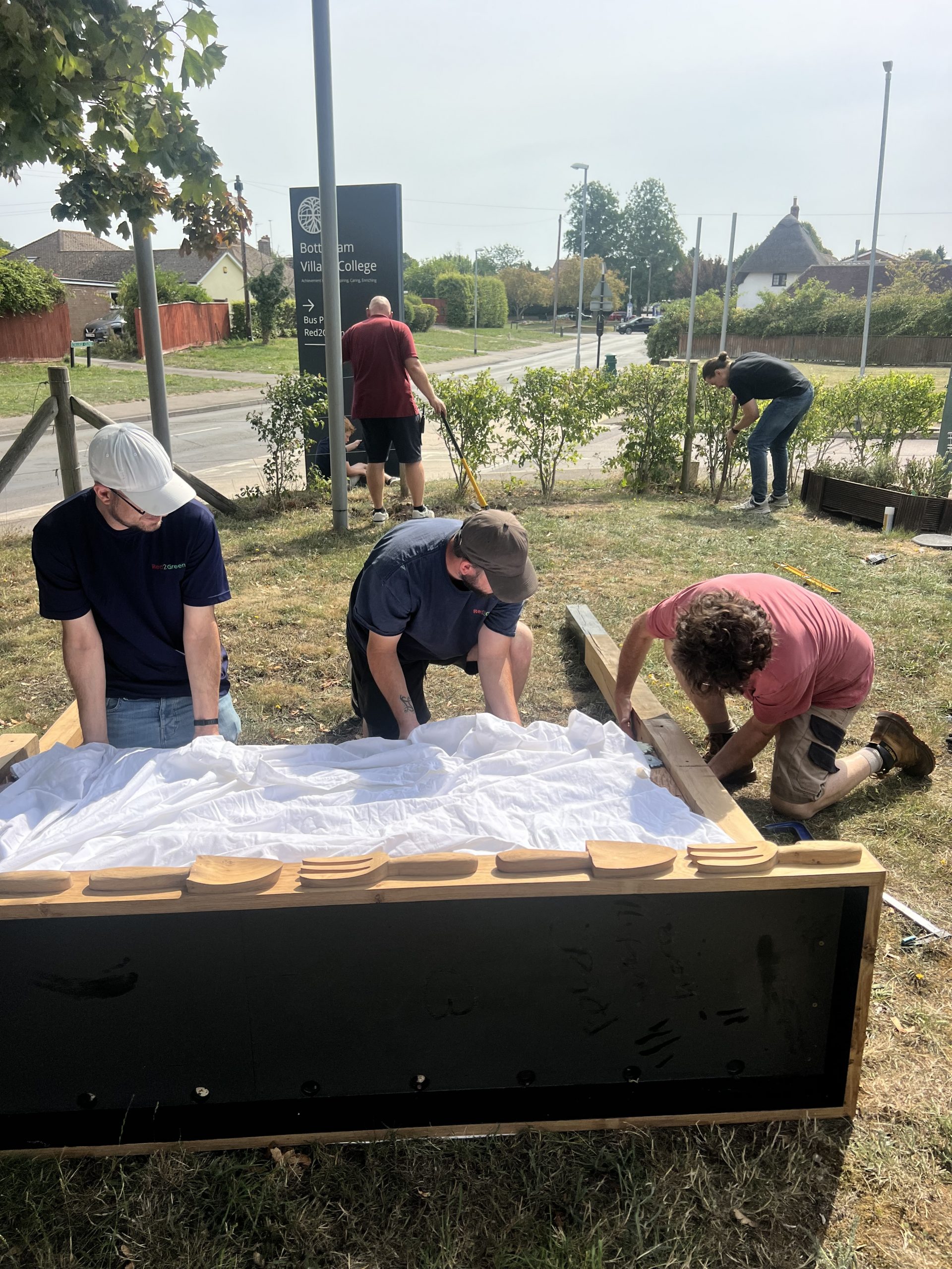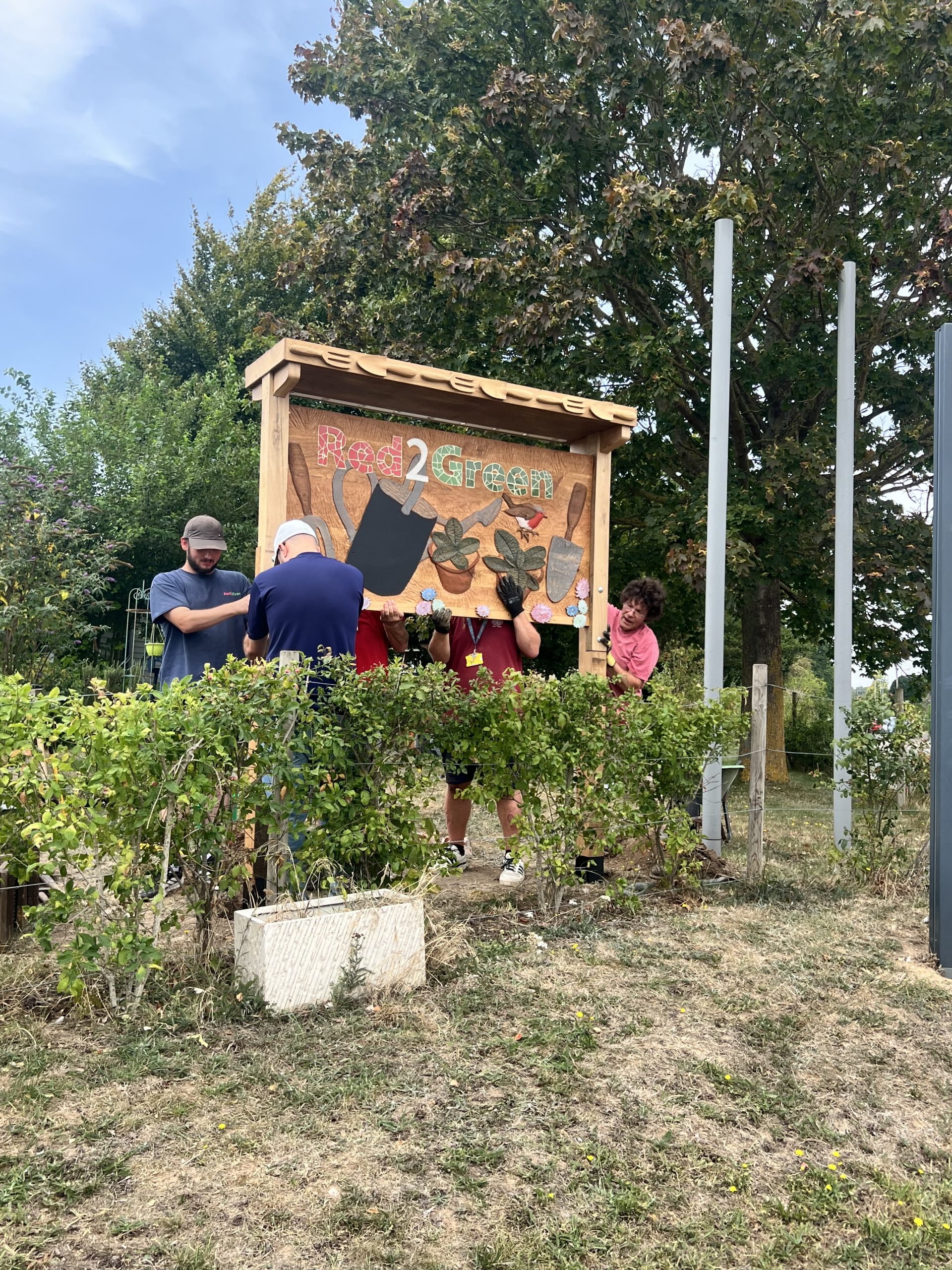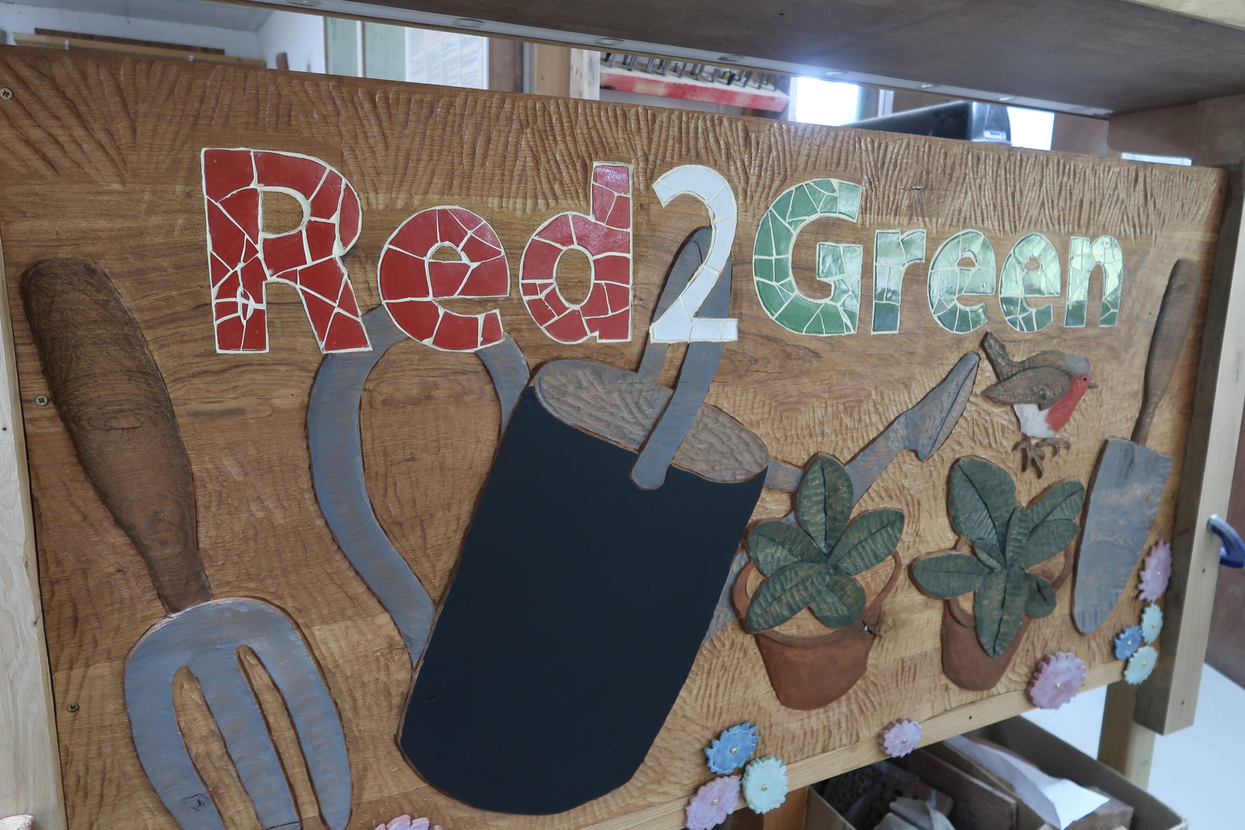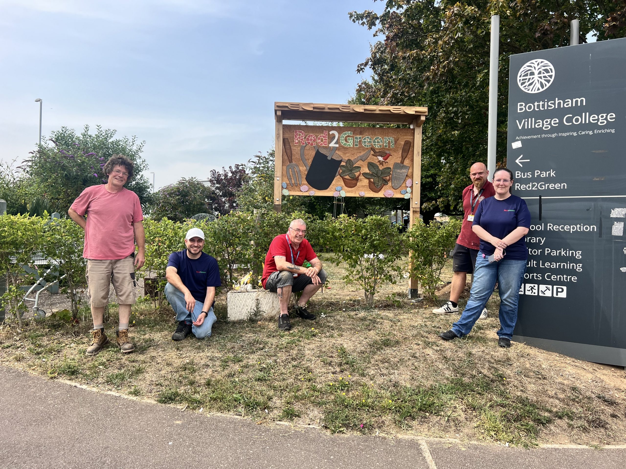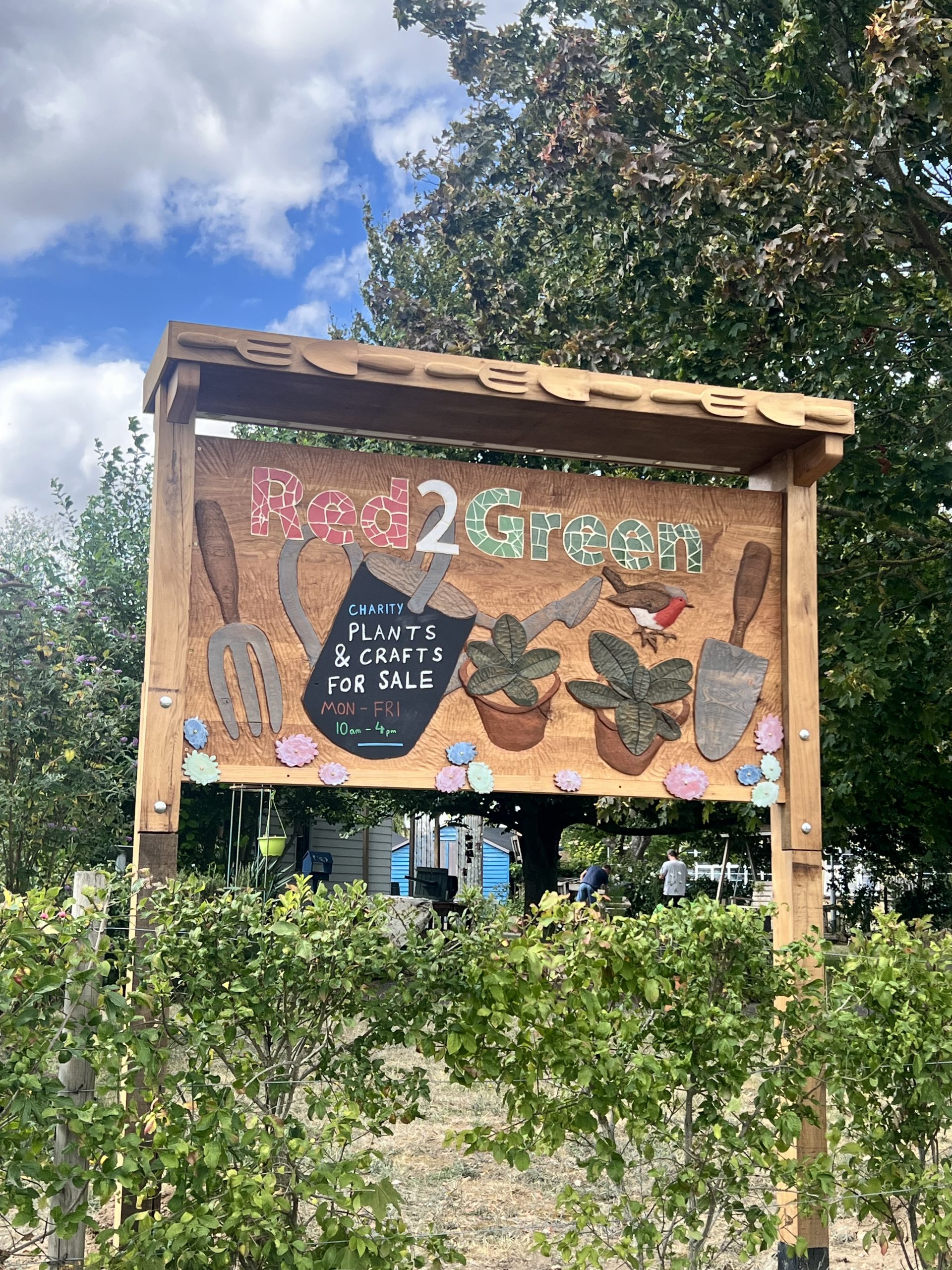 We are absolutely thrilled with the results of our latest Rowan commission for Red 2 Green. The new garden sign has now found its new home at the Community Garden site in Bottisham. Thanks to funding from the D’oyly Carte Charitable Trust, Red 2 Green Learners and Clients had the opportunity to visit Rowan, where they gained woodworking skills and helped carve spades and forks for the top of the sign. A big shout-out to the woodworking team at Rowan for their dedication and attention to detail, and ensuring the sign was transported safely in one piece.
