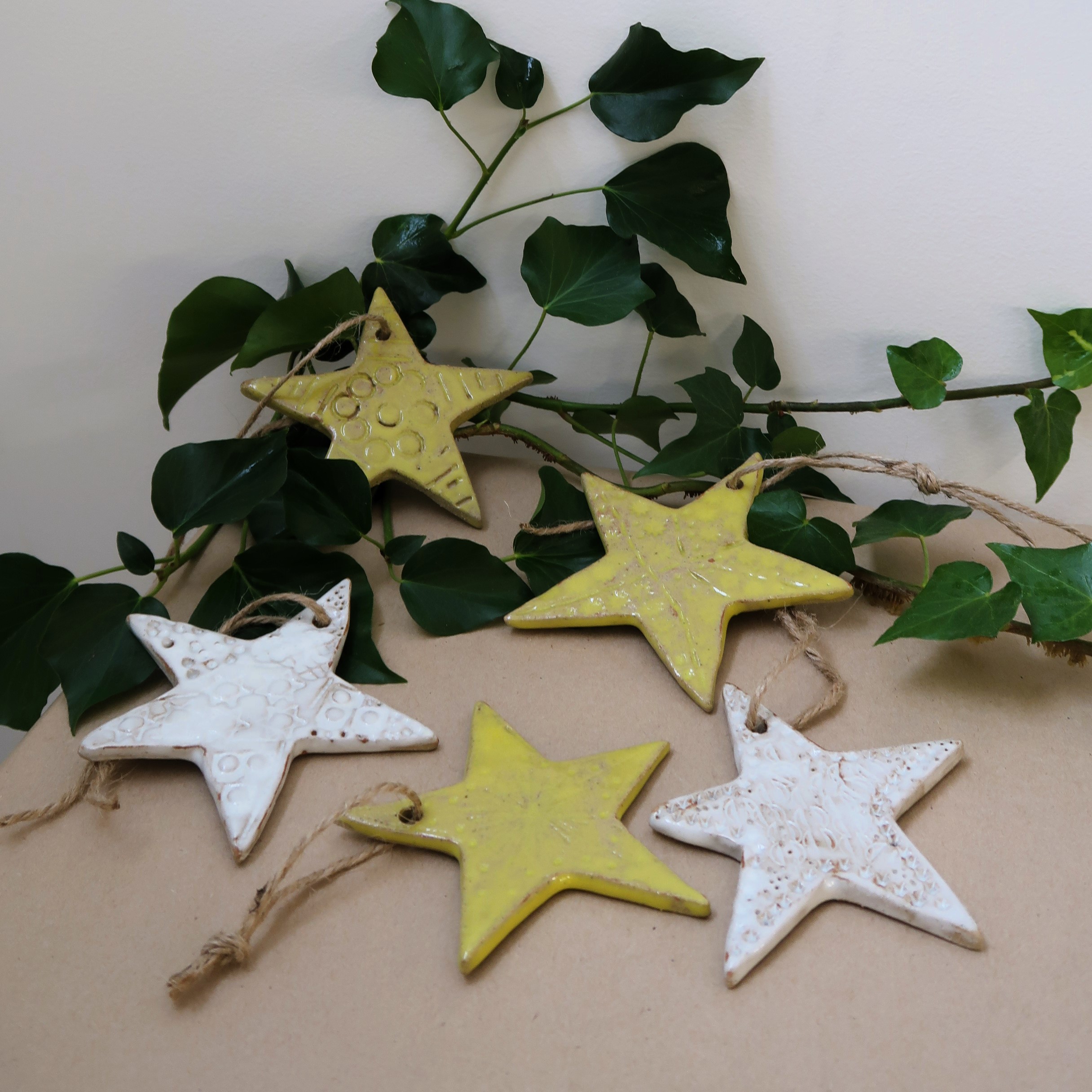 Christmas tree decorations, or to hang around the house, in various shapes and colours.